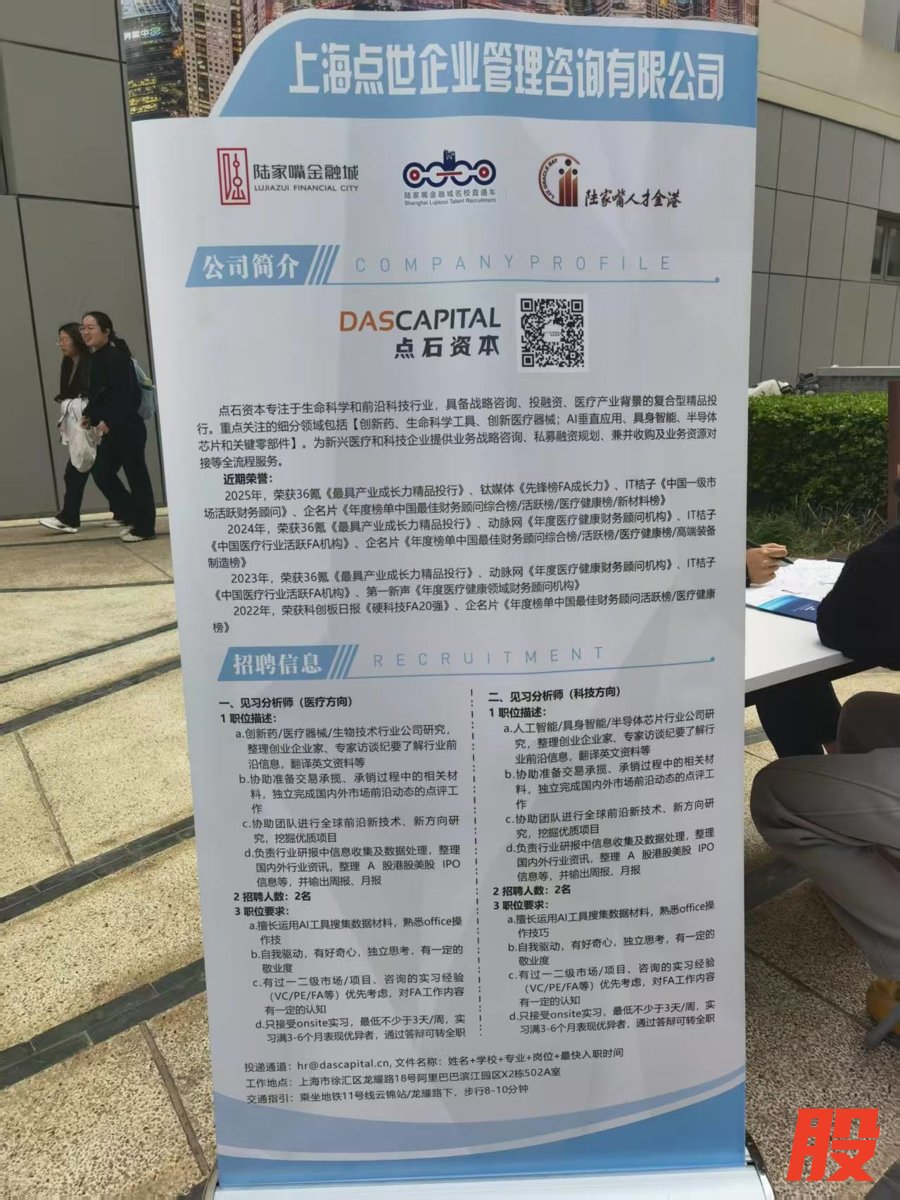 在上科大春招会上,一家企业的“见习分析师”岗位提出要求:擅长运用AI工具收集数据材料。 (李蕾 摄影)
